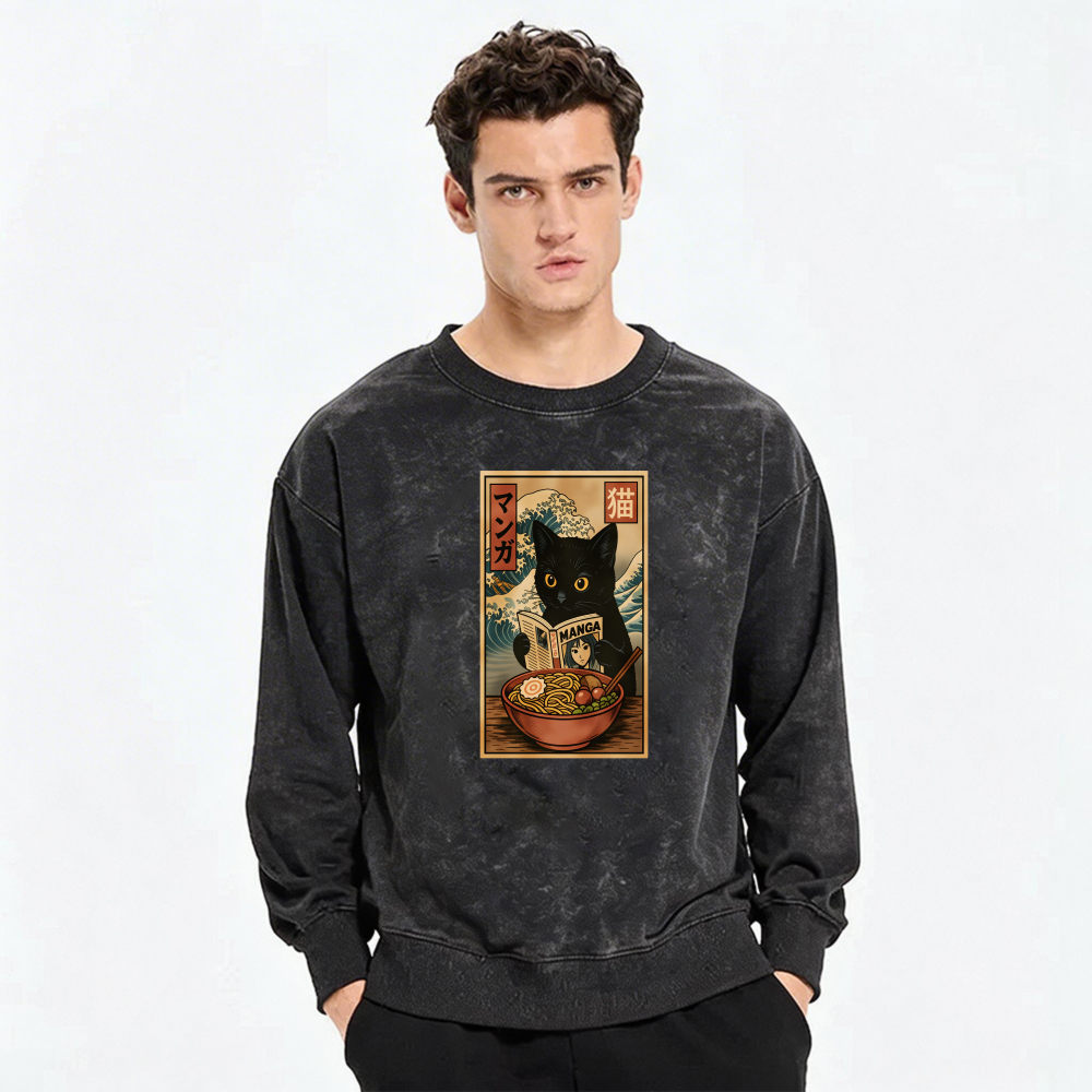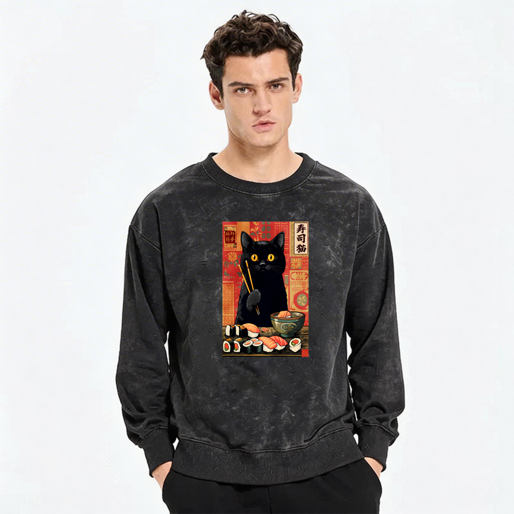 Black Cat Sushi Art Sweatshirt Unisex Crewneck Long Sleeve Graphic Pullover Casual Wear$36.99 USD$49.99 USD