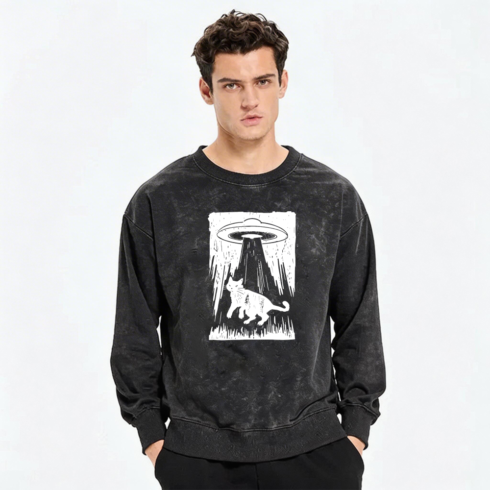 Cat Abduction By Ufo Graphic Sweatshirt Black Long Sleeve Casual Top For Men Women$36.99 USD$49.99 USD
