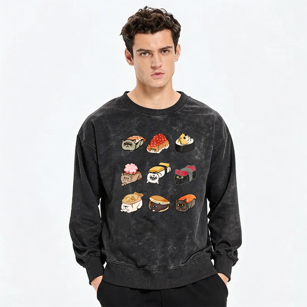 Cute Cat Sushi Design Sweatshirt Unisex Long Sleeve Casual Top For Men And Women$36.99 USD$49.99 USD