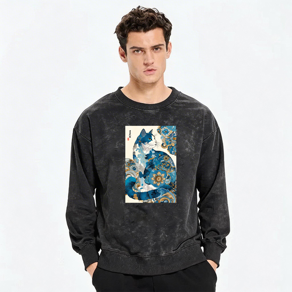 Blue Cat Art Print Crewneck Sweatshirt Unisex Casual Long Sleeve Pullover Fashion Top$36.99 USD$49.99 USD