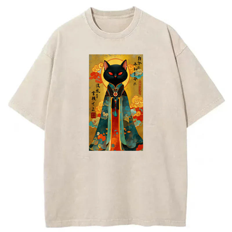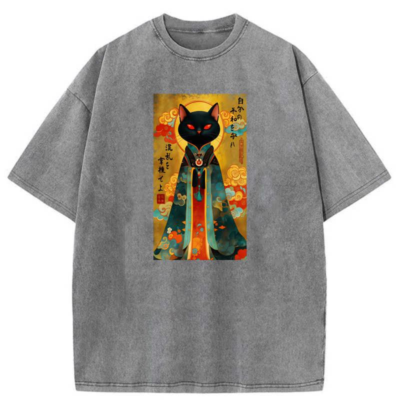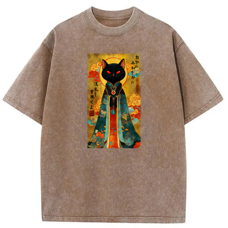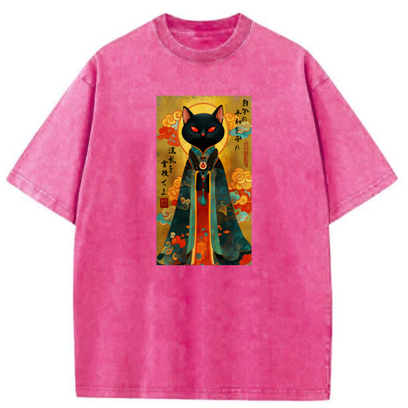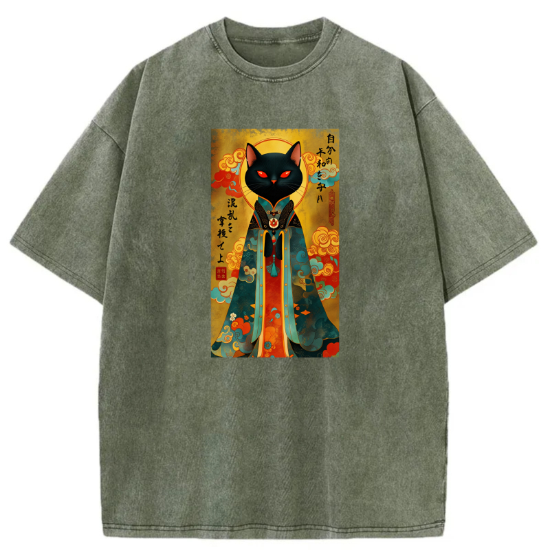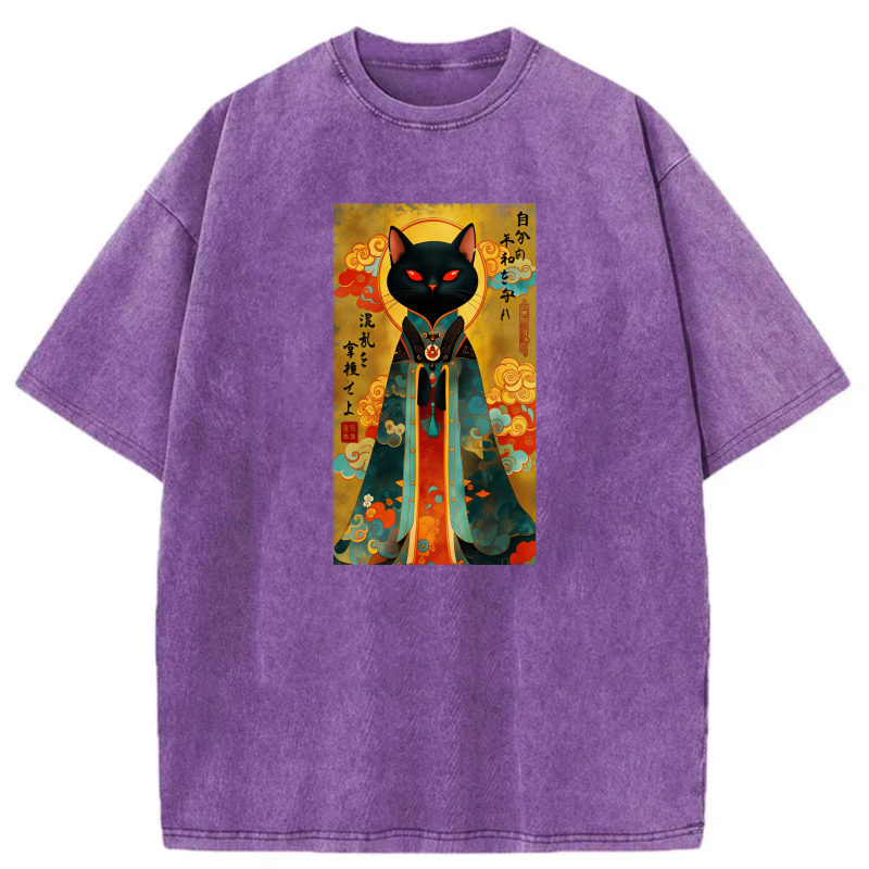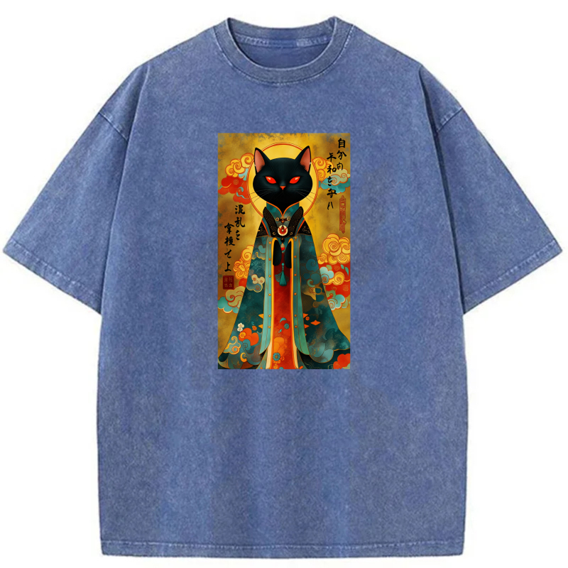 Black Cat In Traditional Japanese Attire tshirt 100% cotton