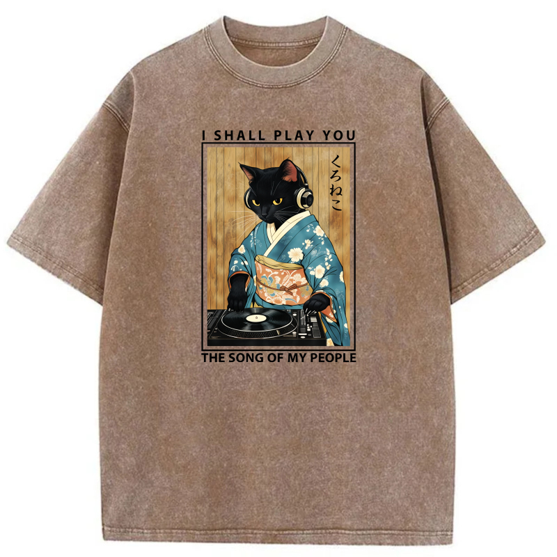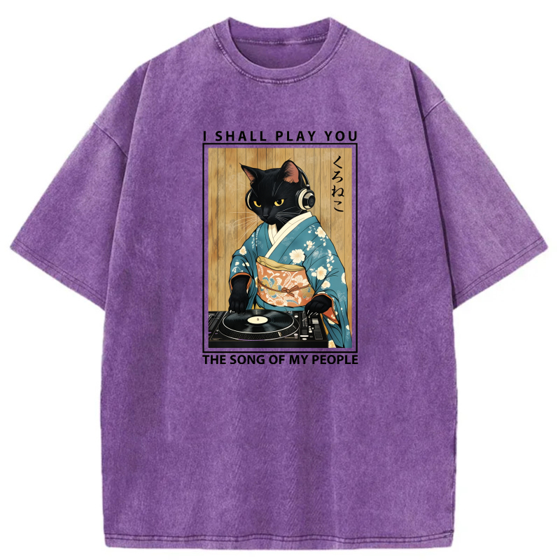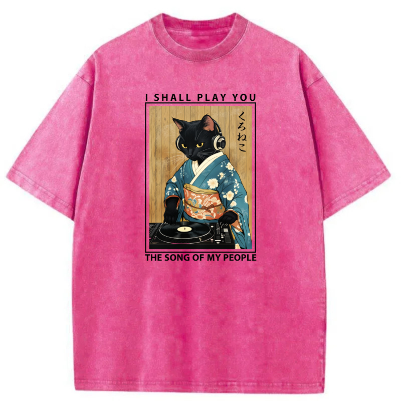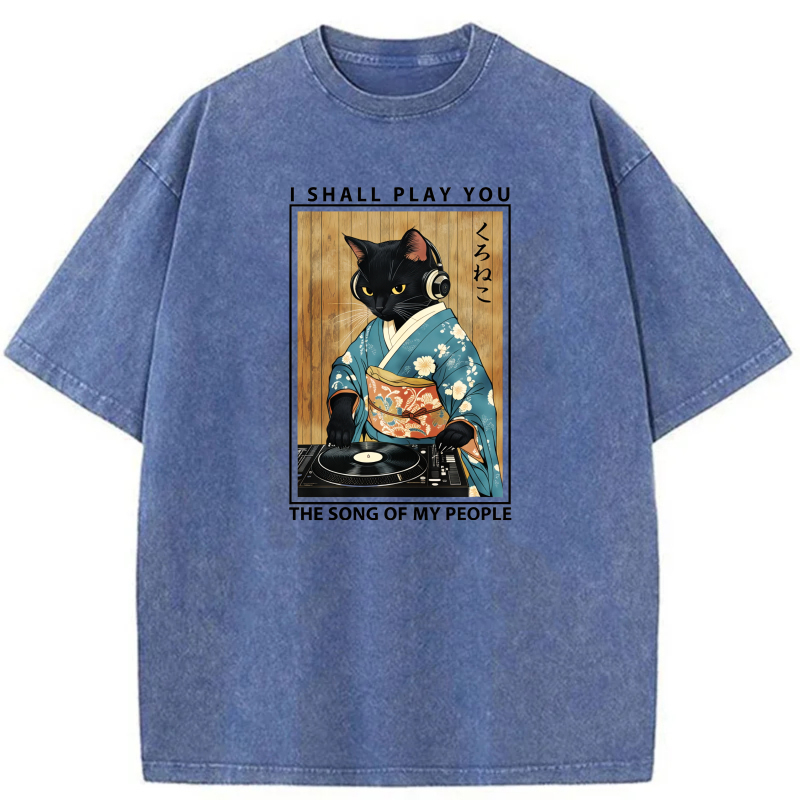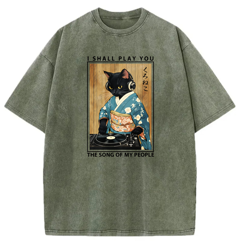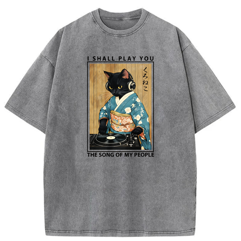 Cat In Kimono Playing Vinyl Record tshirt 100% cotton