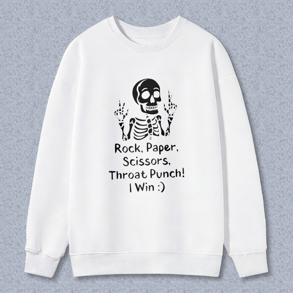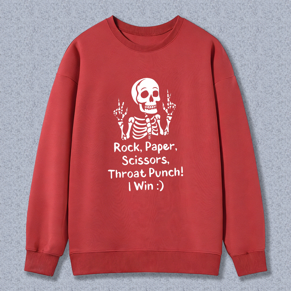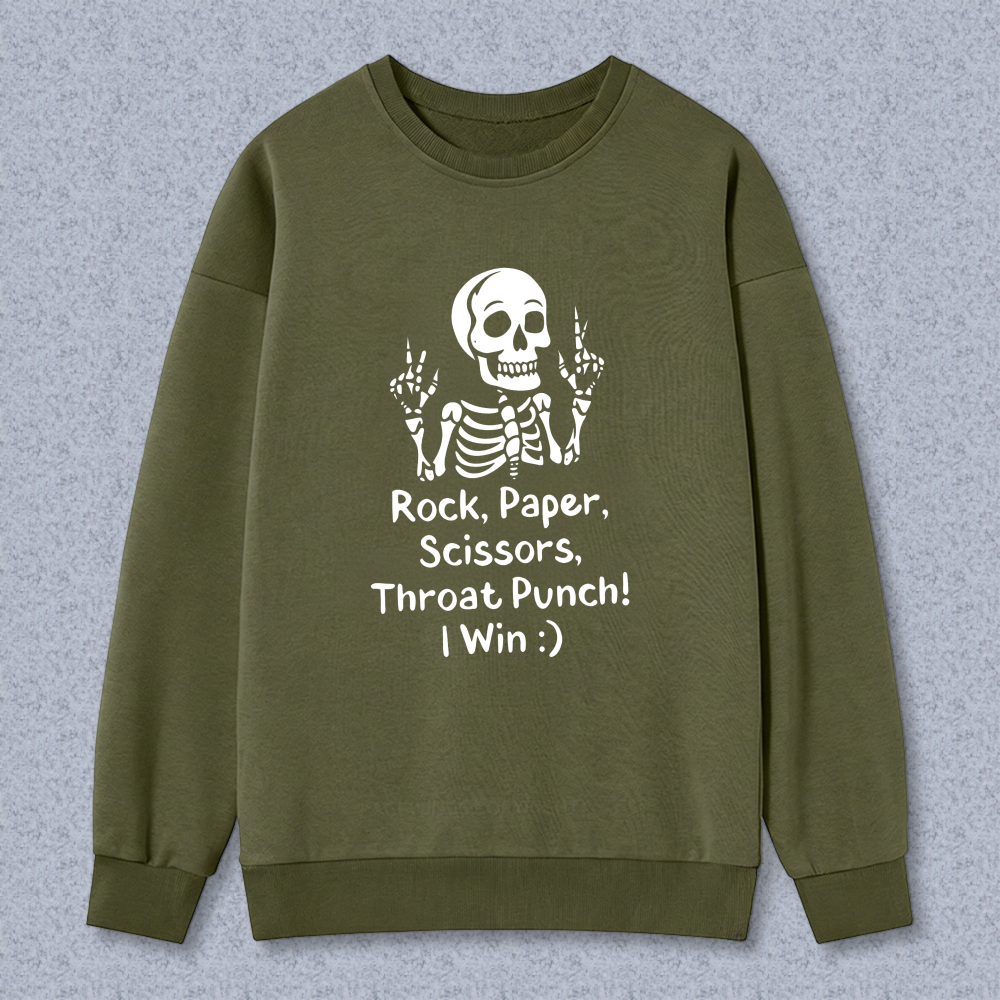 Funny Skeleton Rock Paper Scissors Throat Punch Sweatshirt Halloween Costume Shirt
