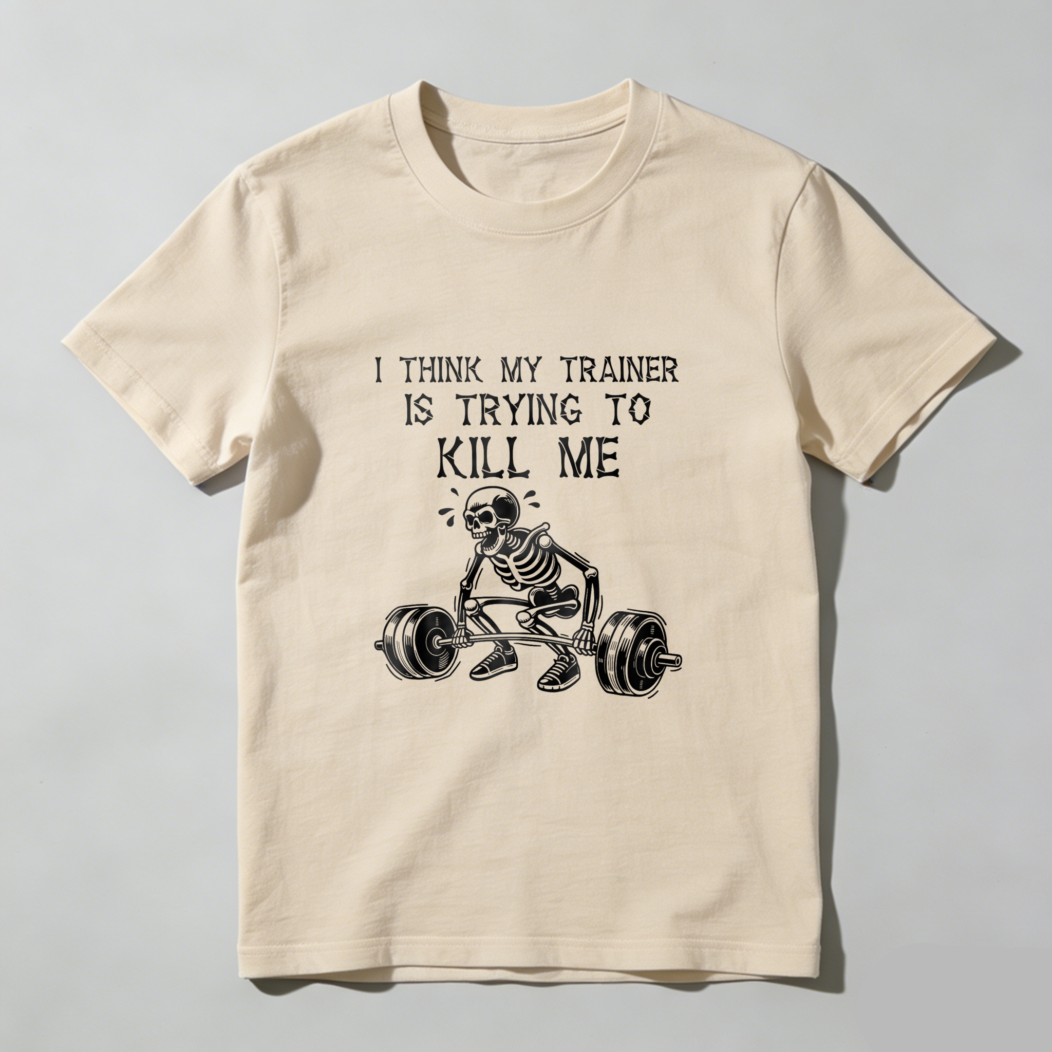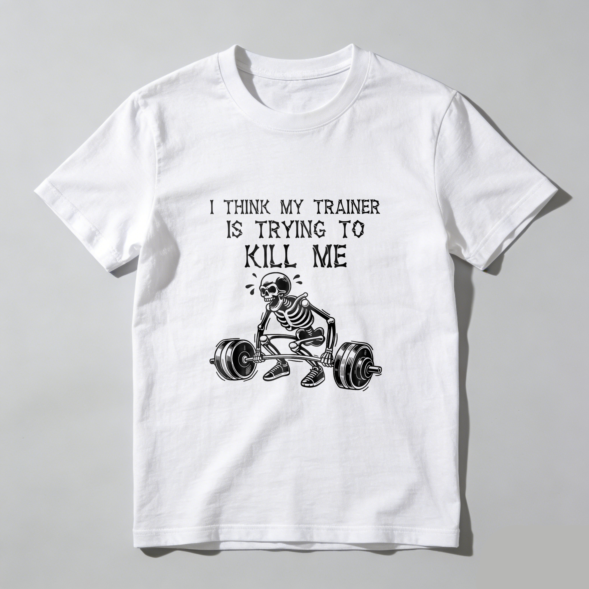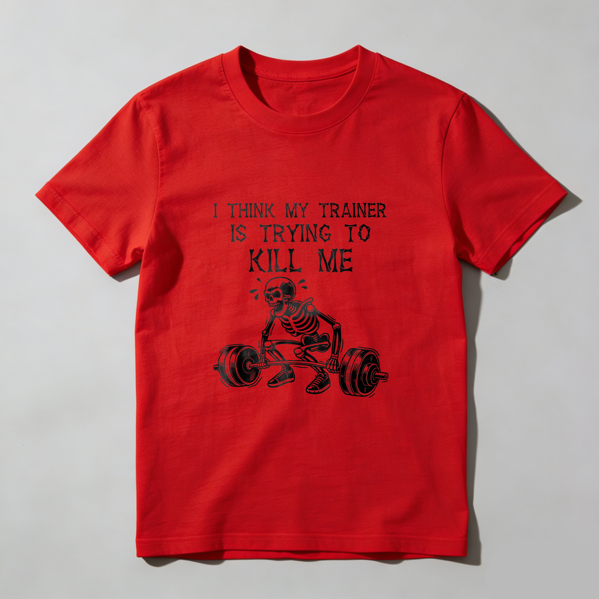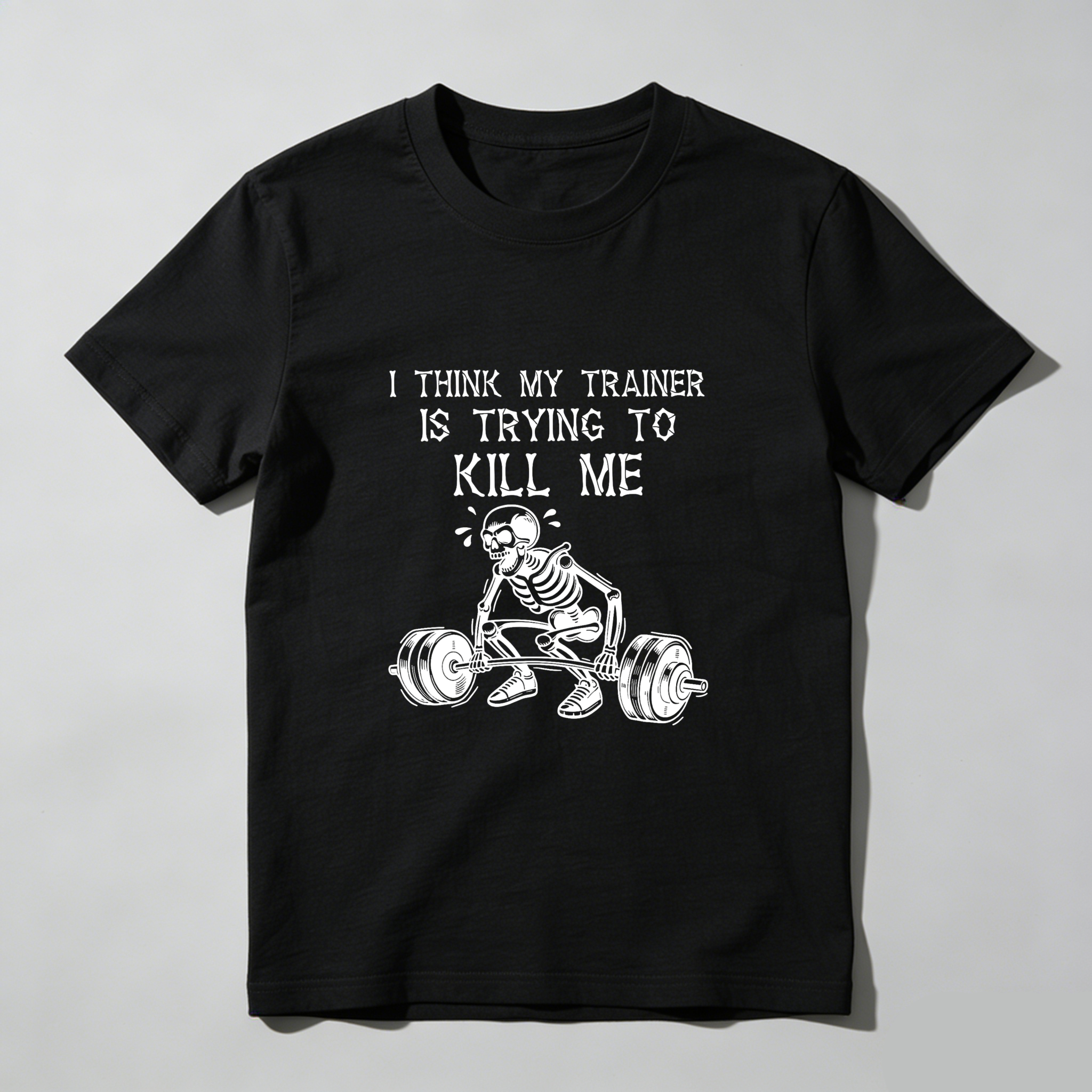 I Think My Trainer Is Trying To Kill Me tshirt 100% cotton
