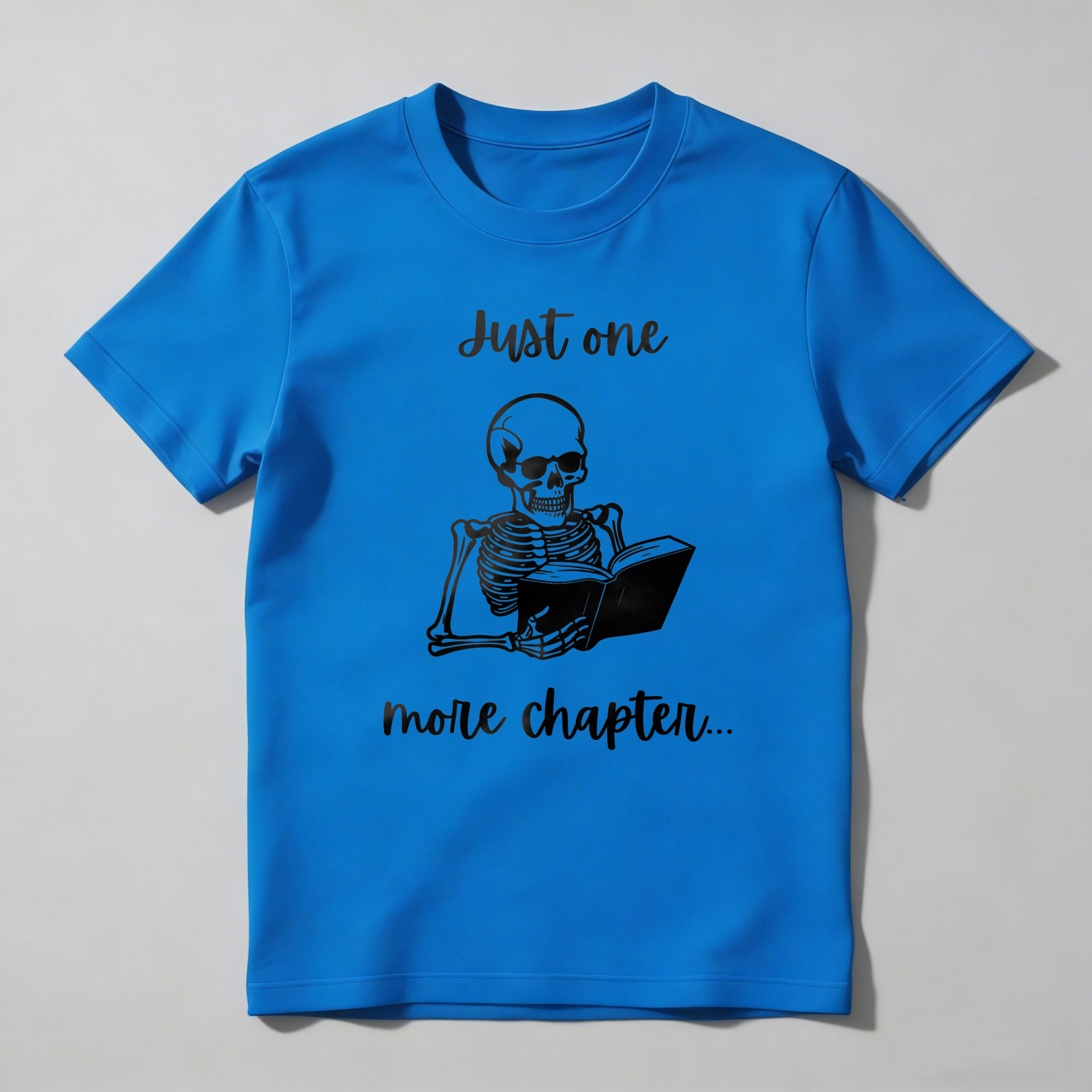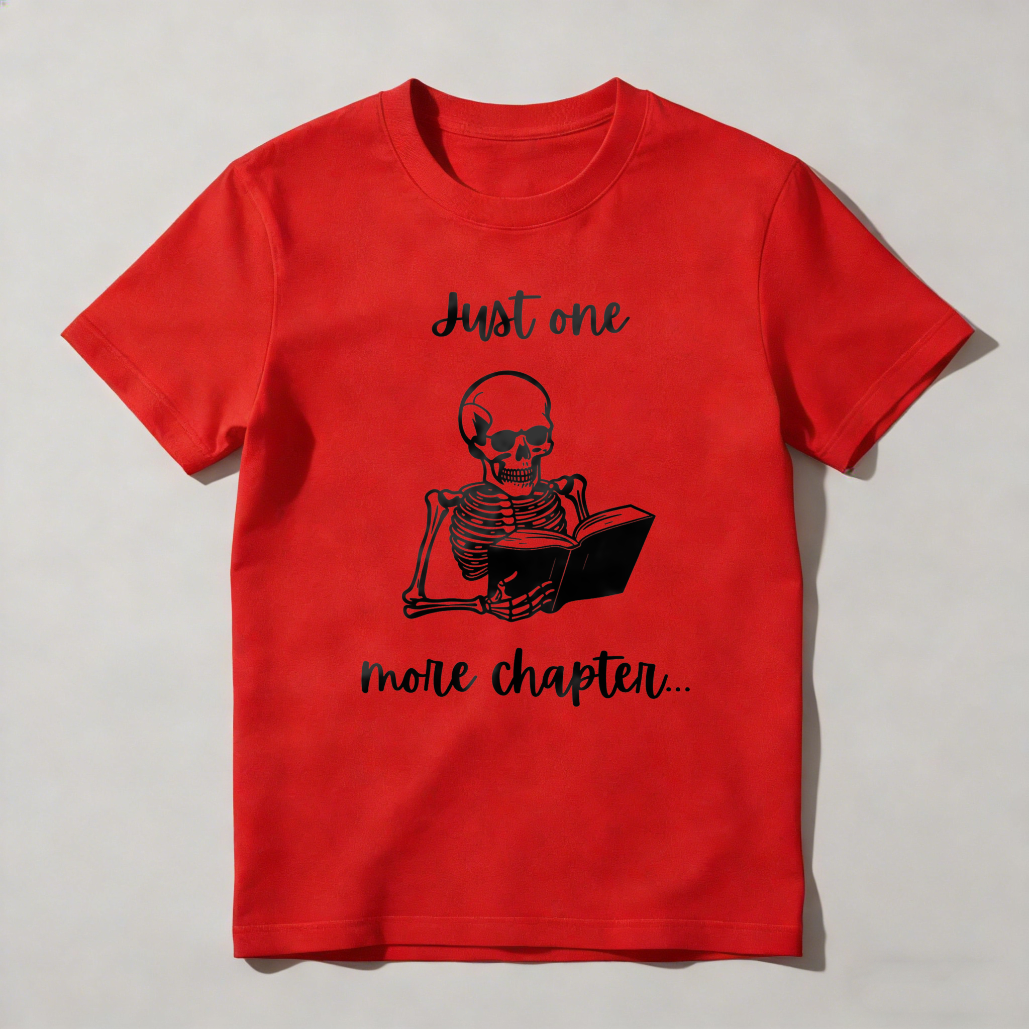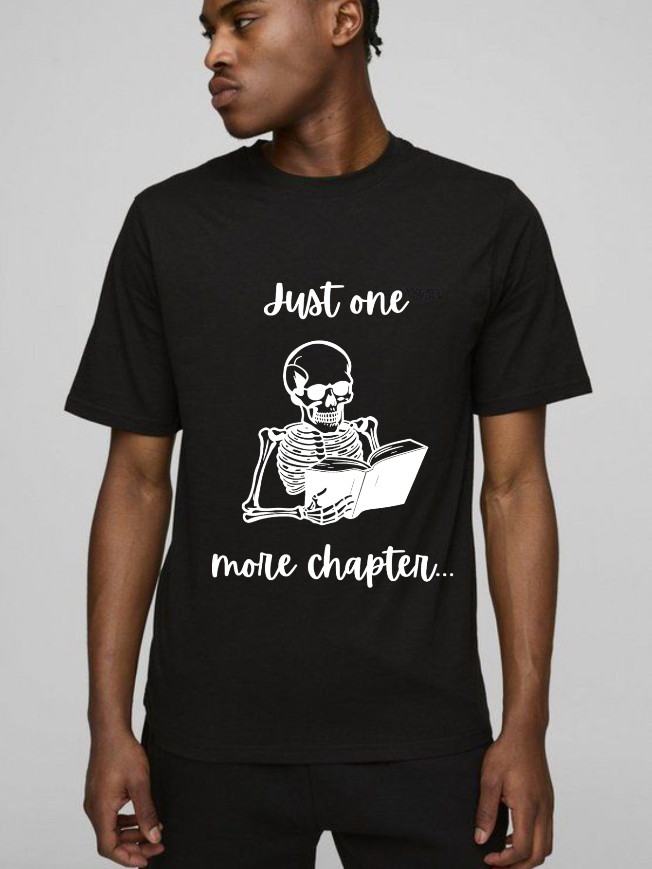 Just One More Chapter Skeleton Reading Book tshirt 100% cotton