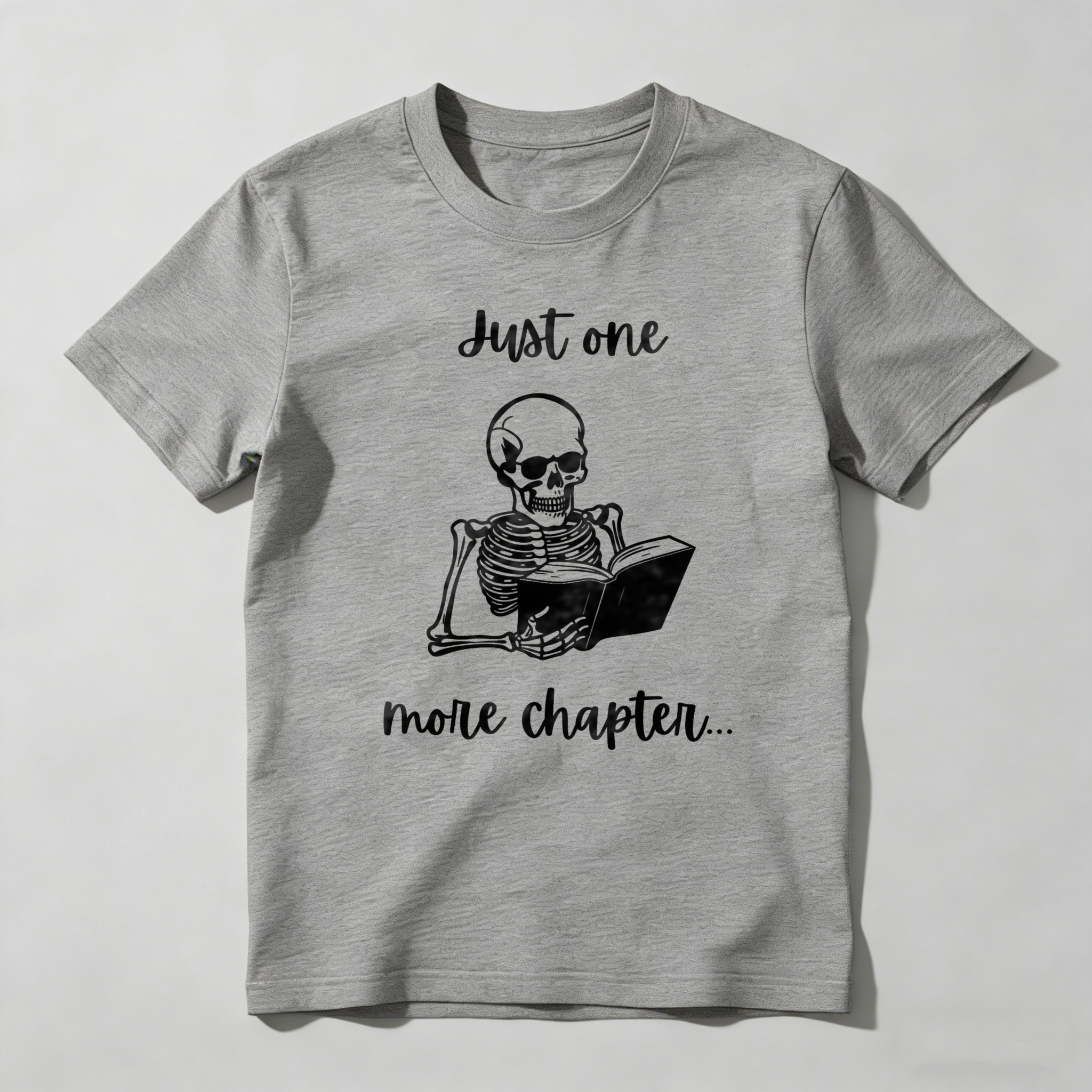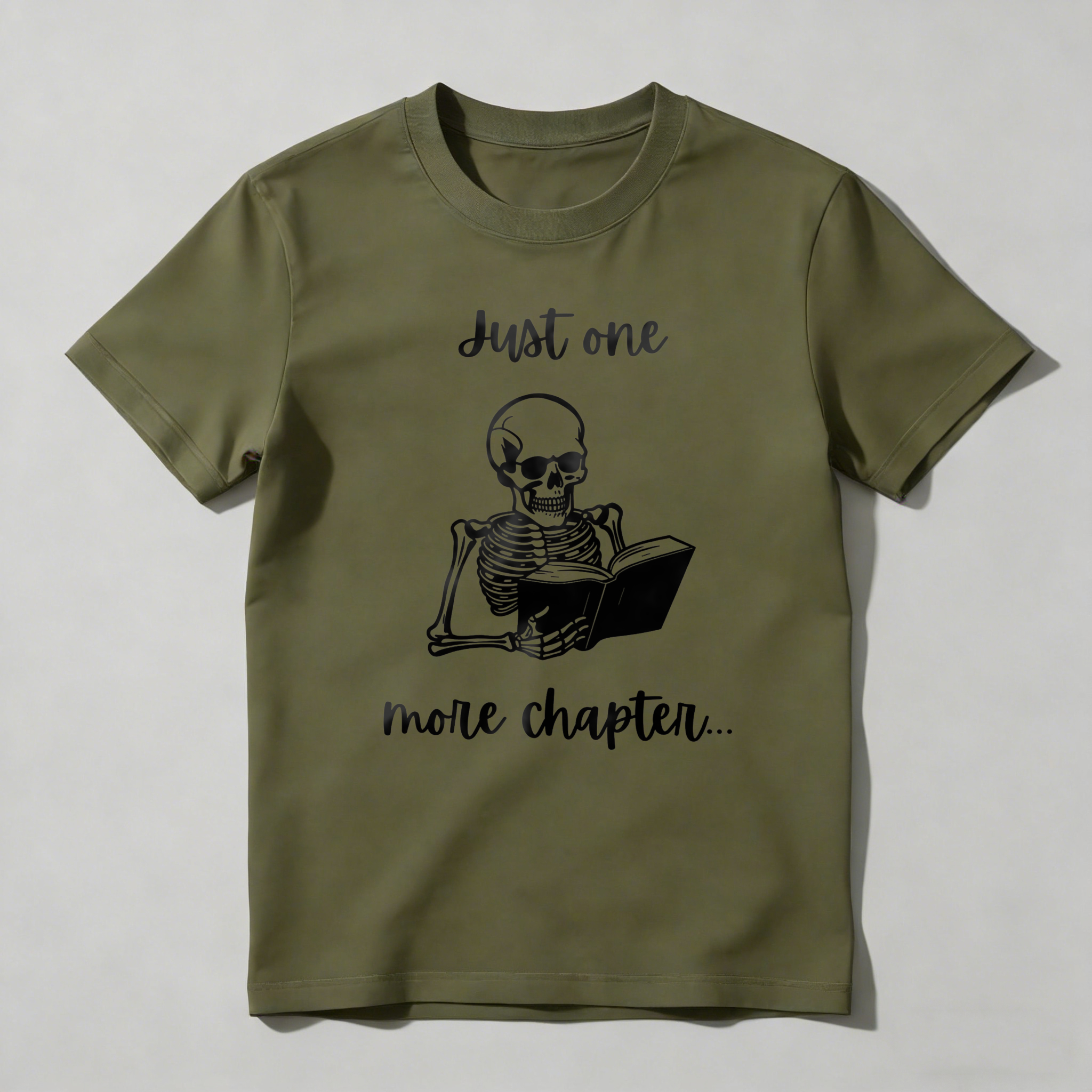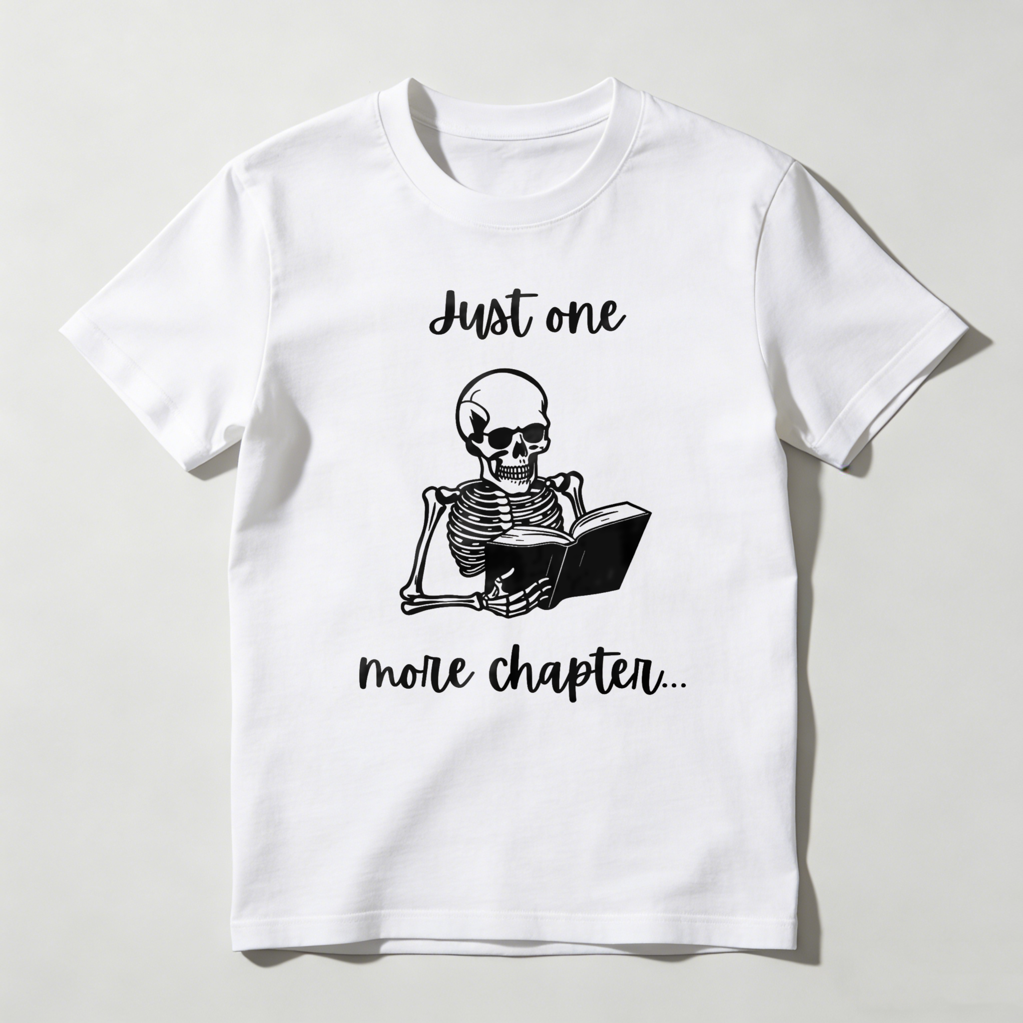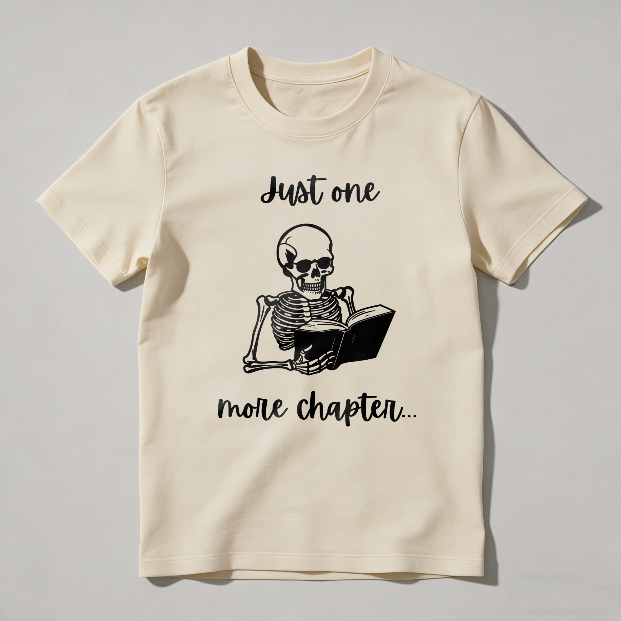 Just One More Chapter Skeleton Reading Book tshirt 100% cotton