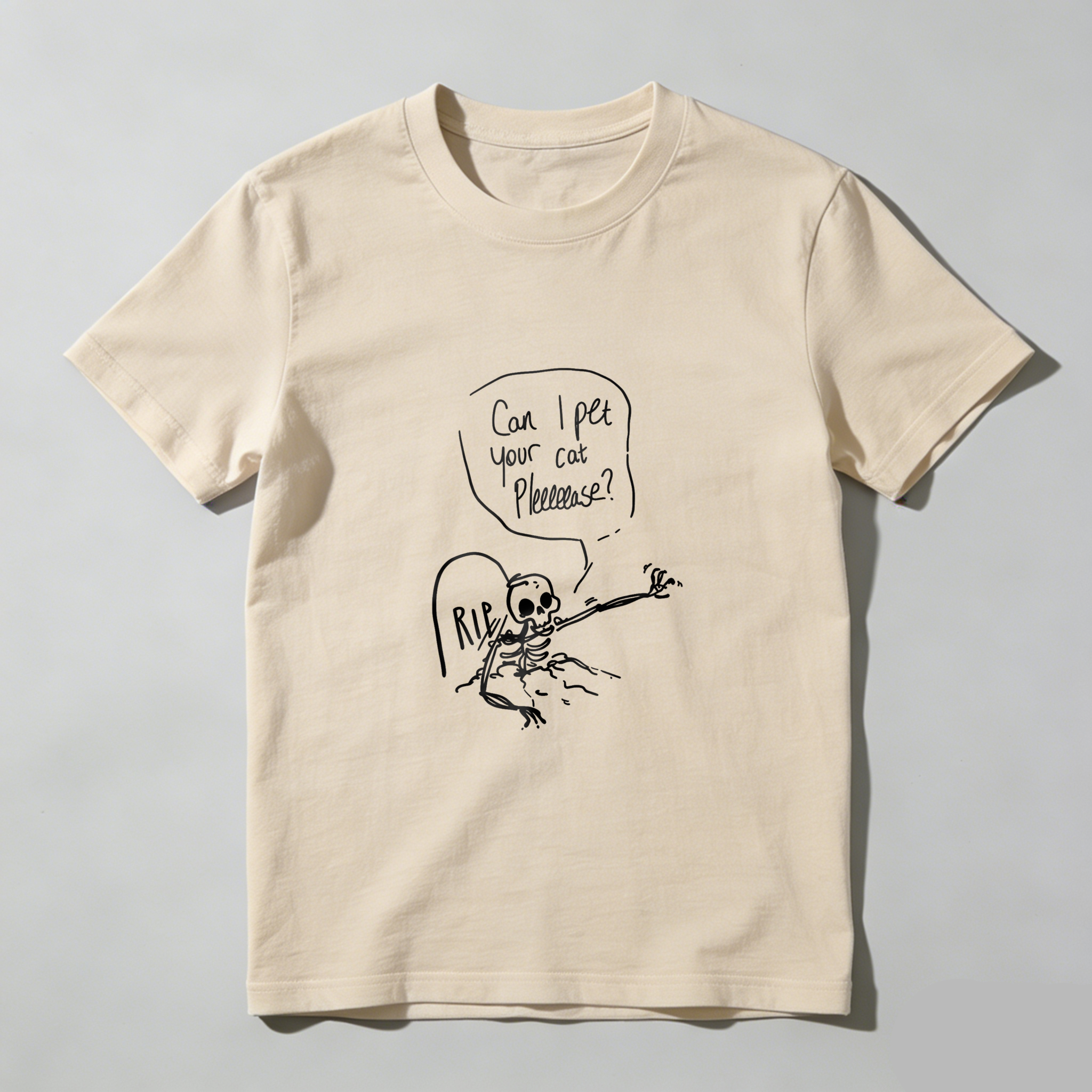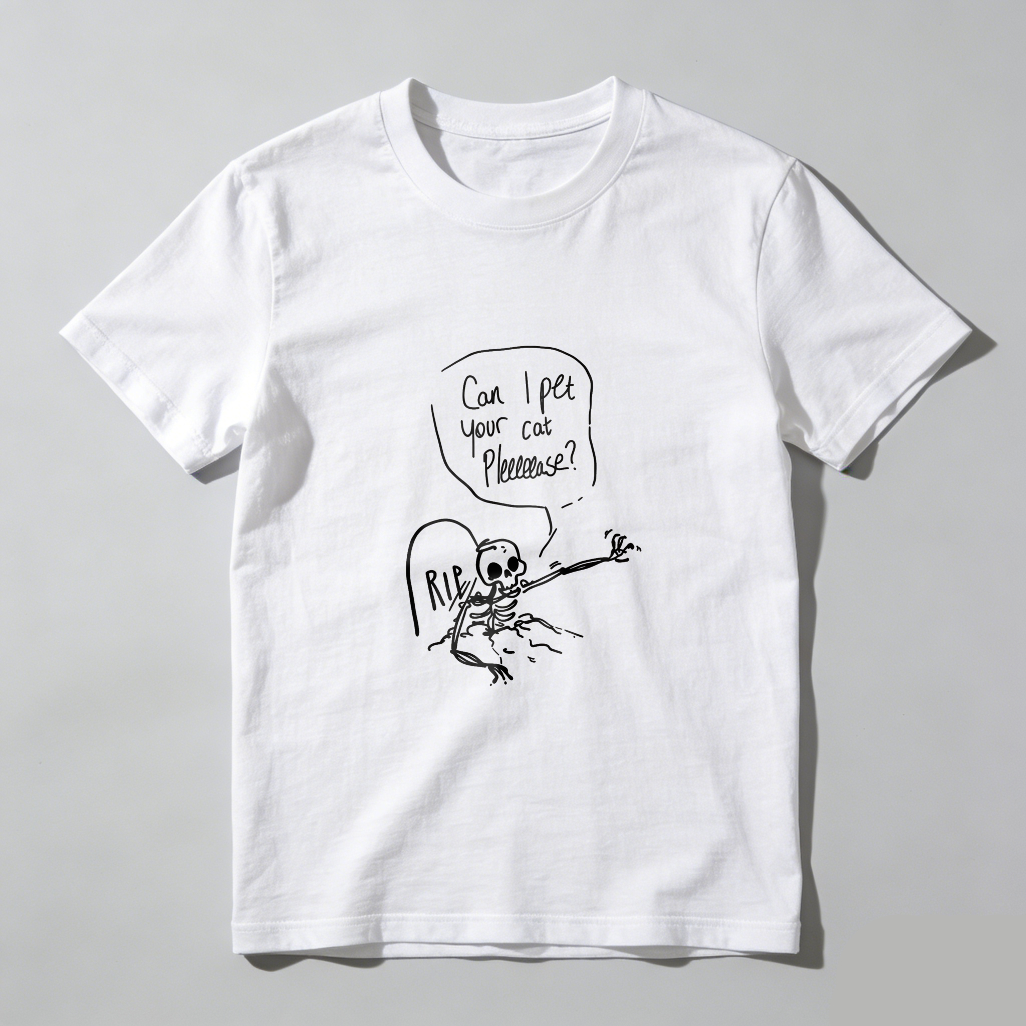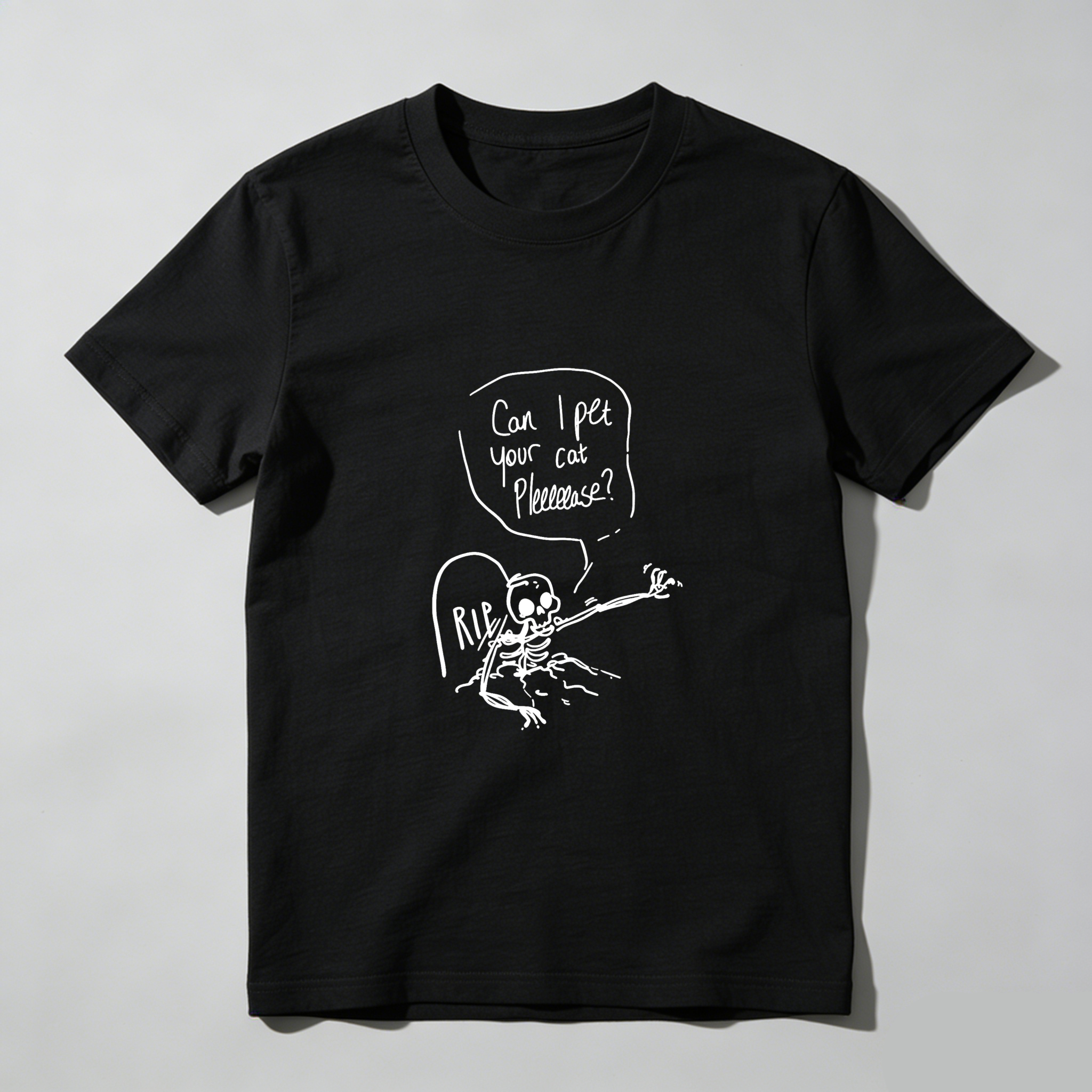 Skeleton Asks To Pet Cat tshirt 100% cotton
