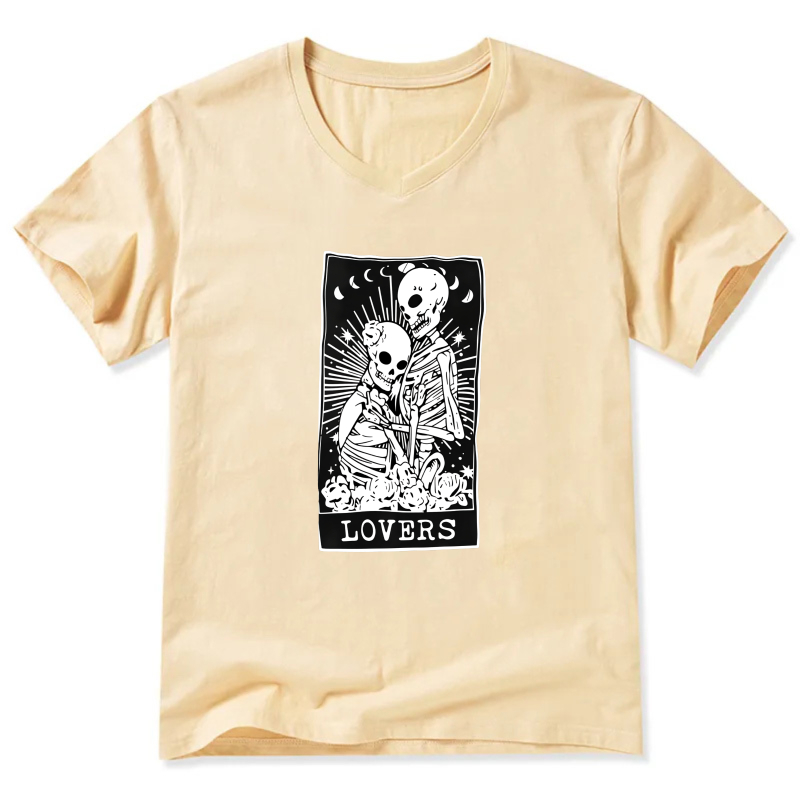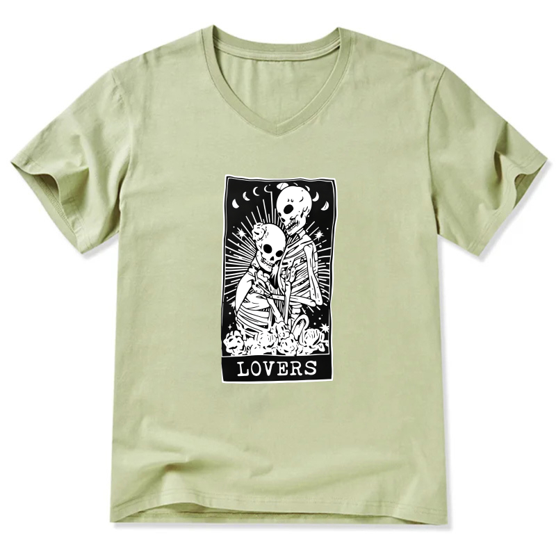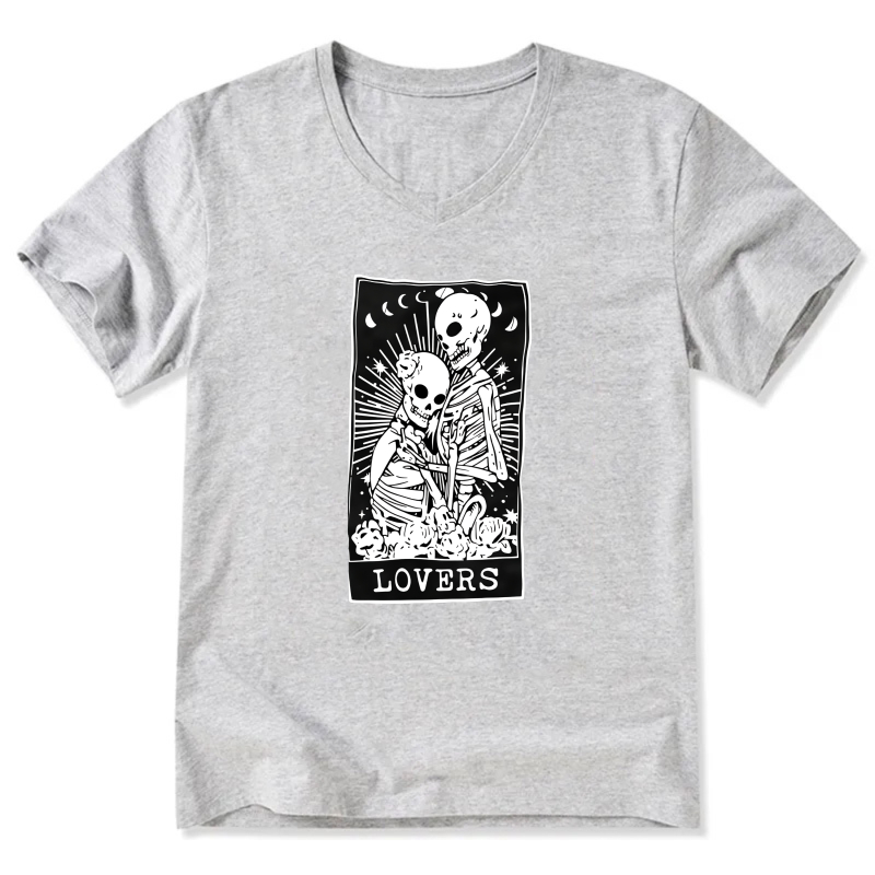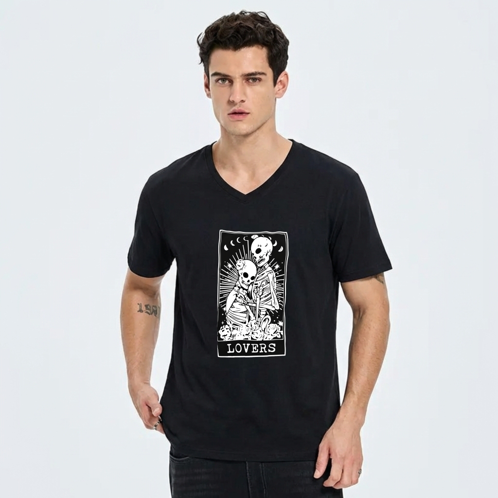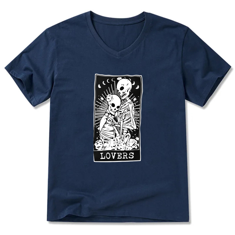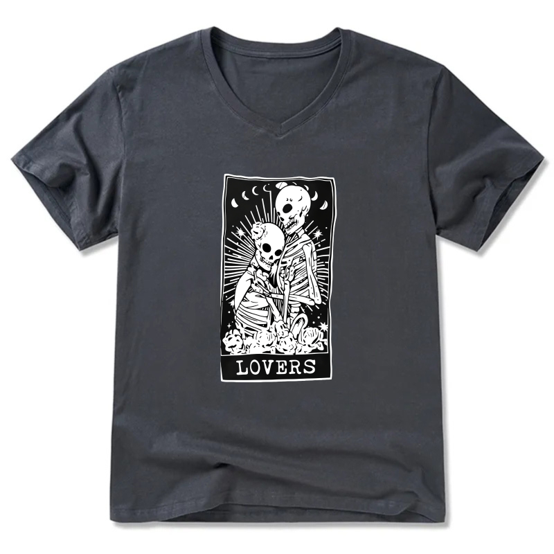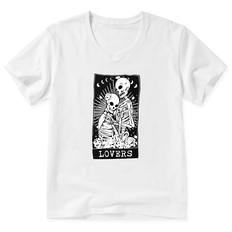 Skeleton Lovers Tarot Card Design Black T-Shirt For Men And Women