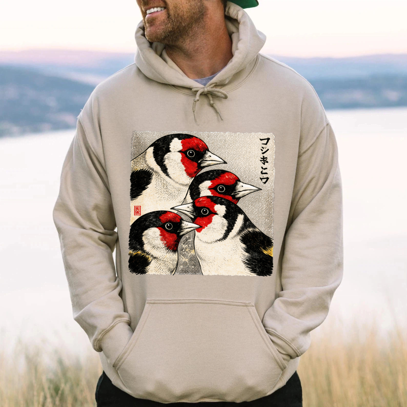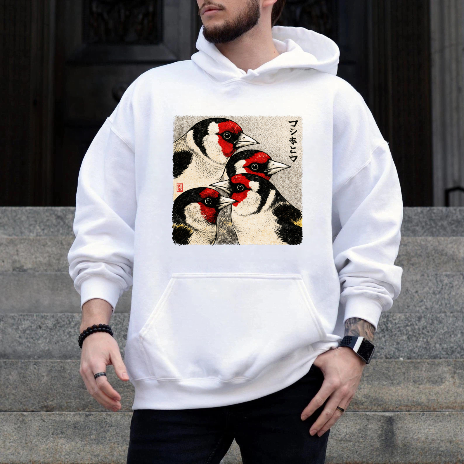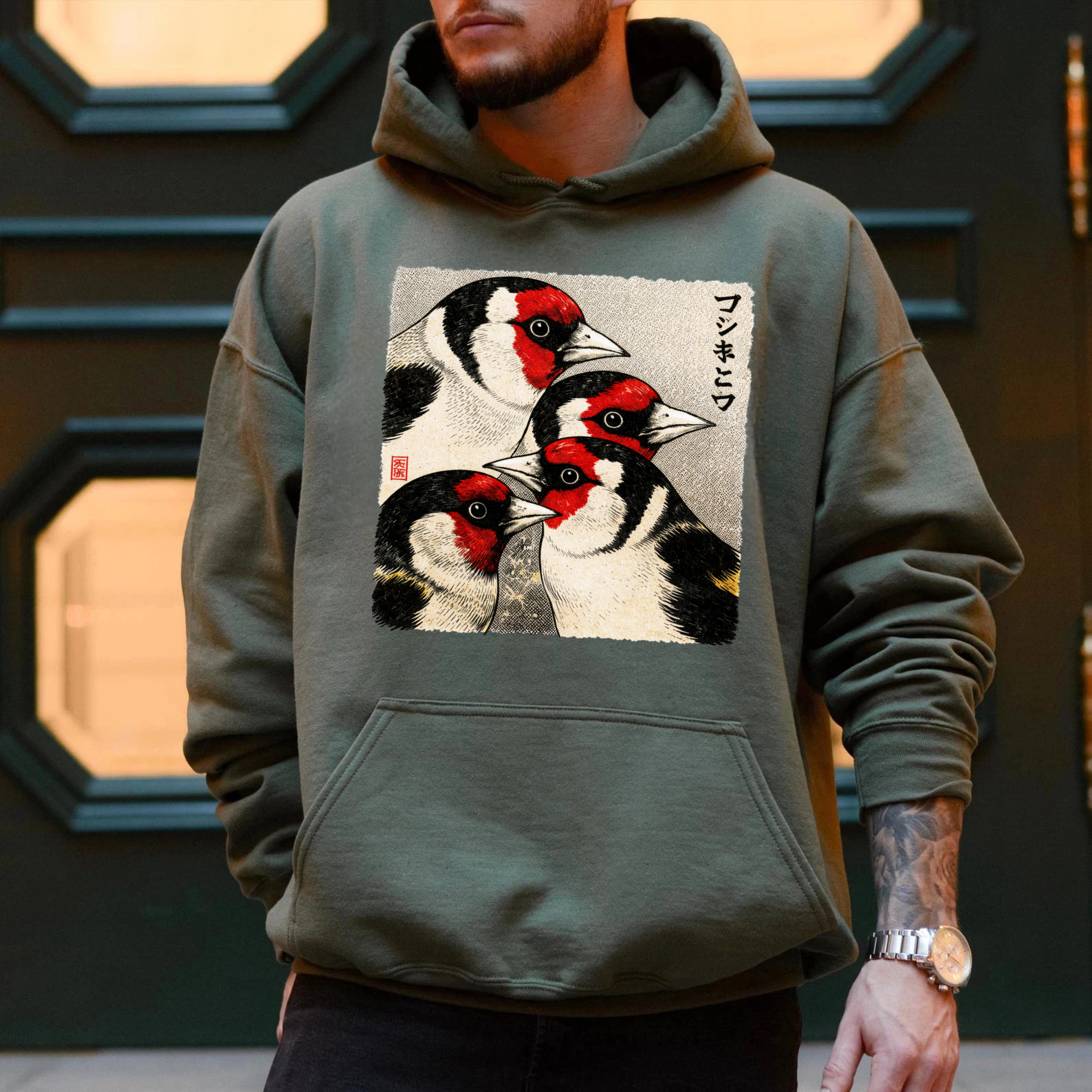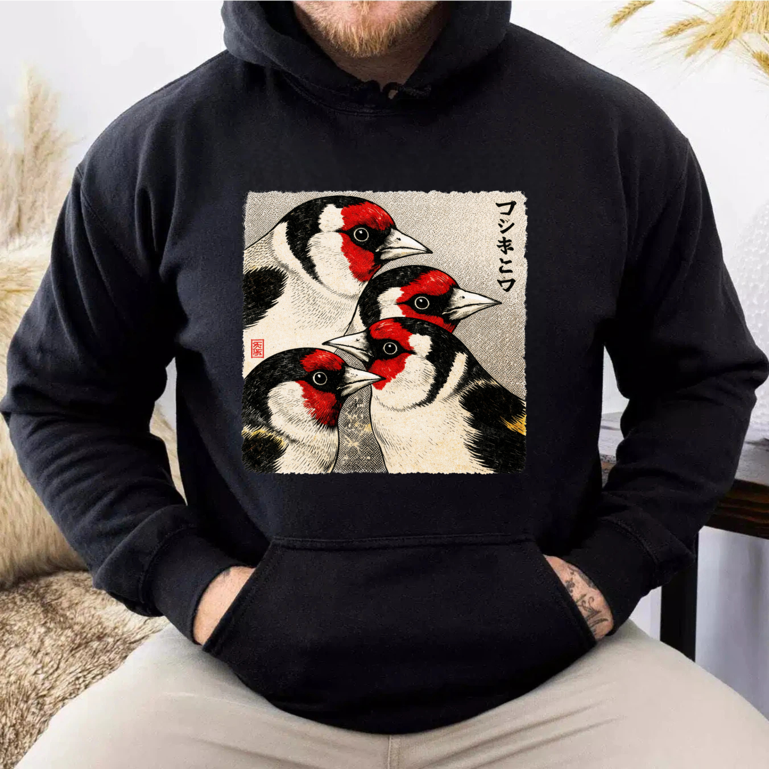 Woodpecker Art Print Hoodie Japanese Style Bird Design Black Sweatshirt