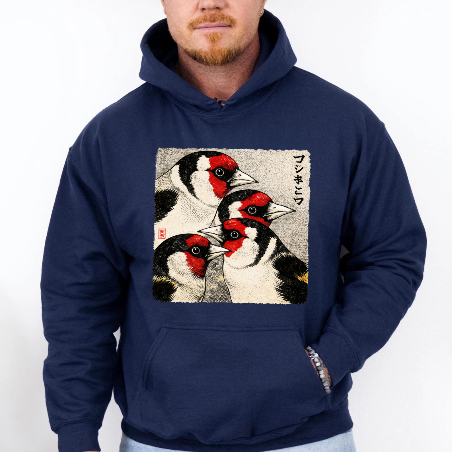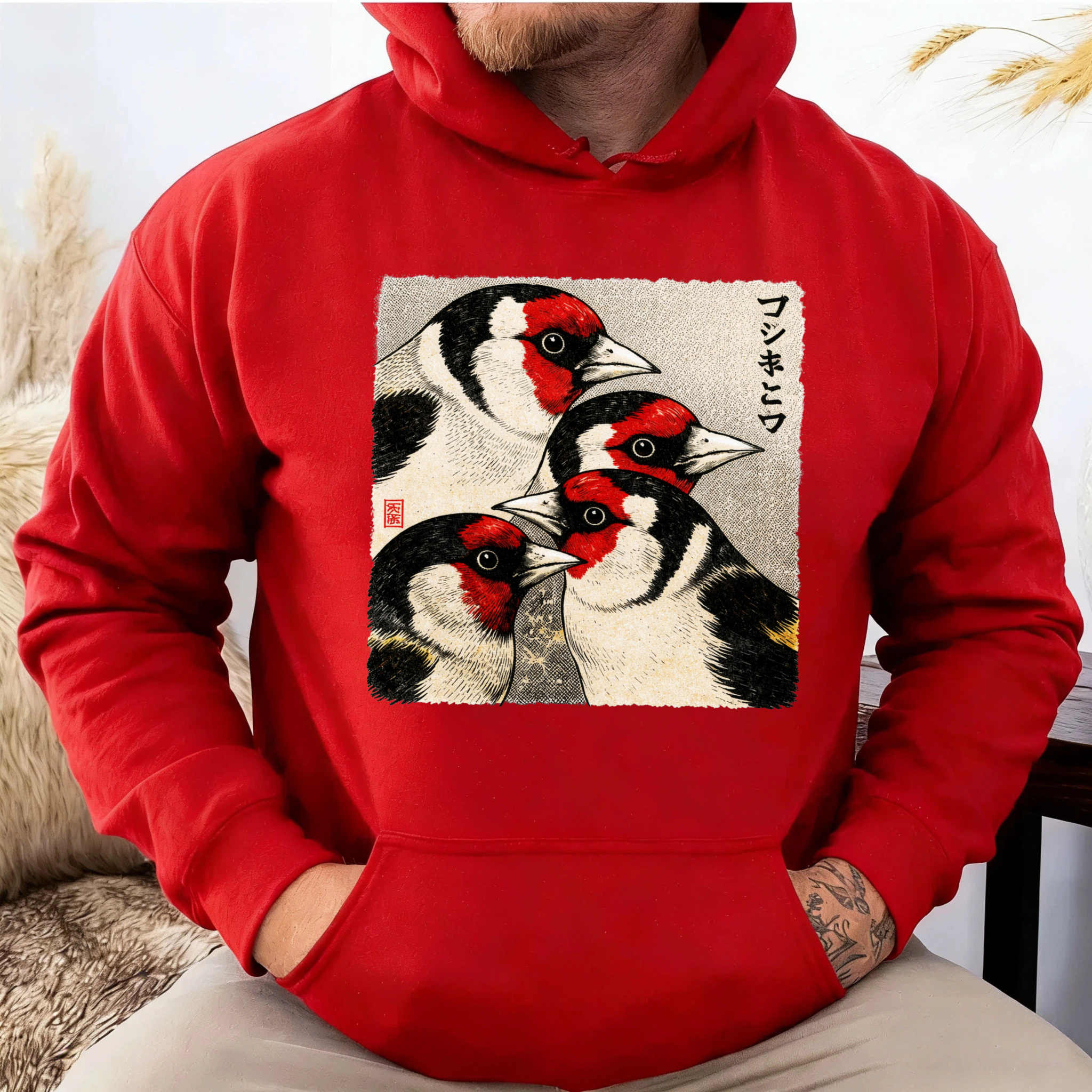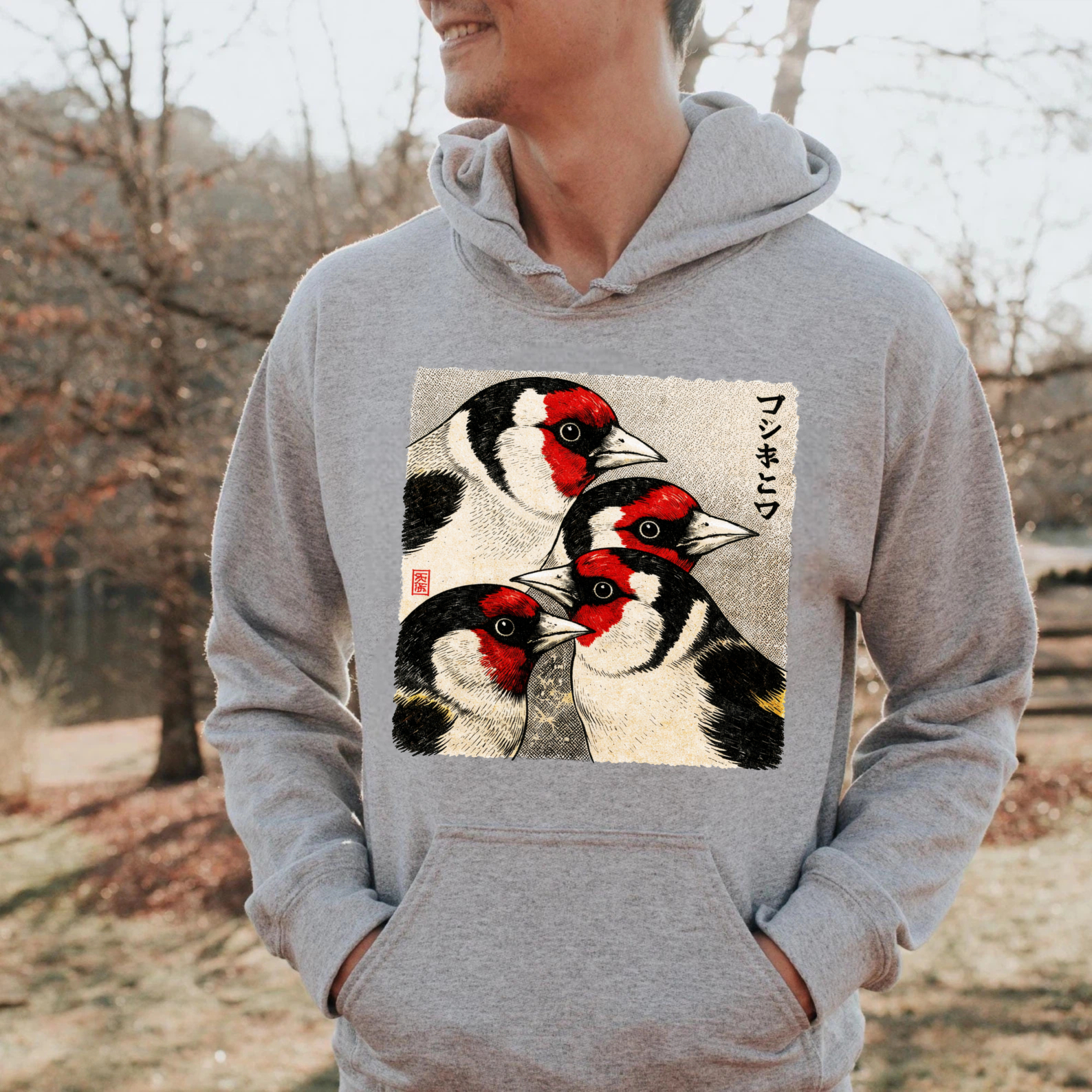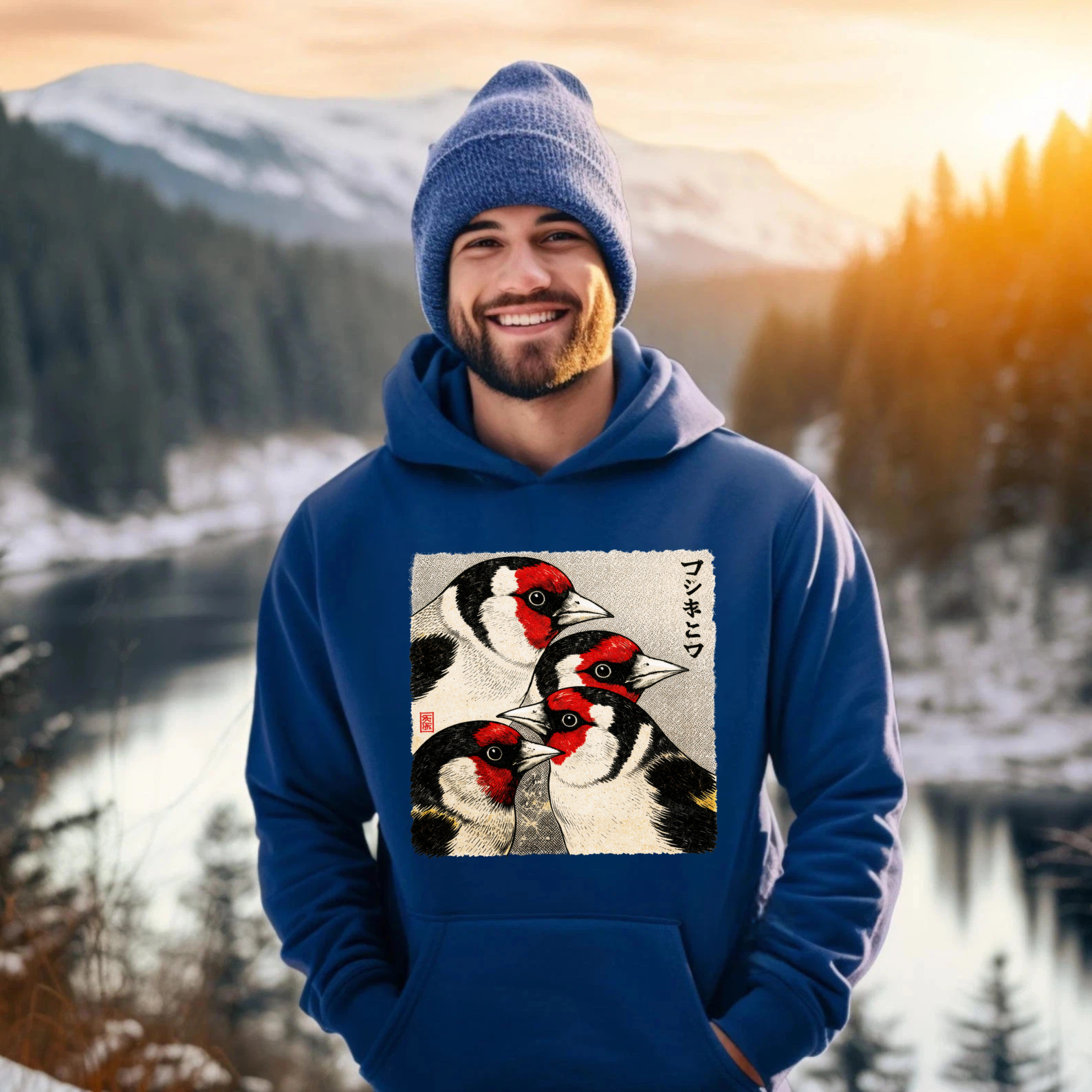 Woodpecker Art Print Hoodie Japanese Style Bird Design Black Sweatshirt